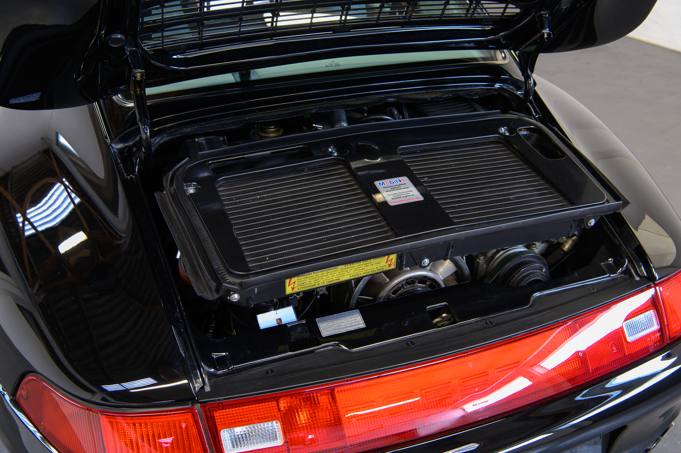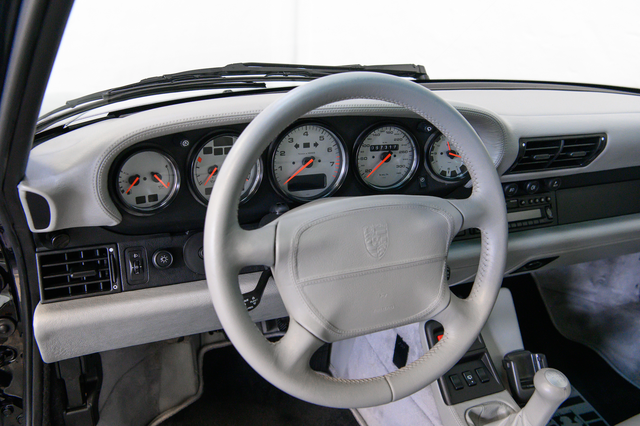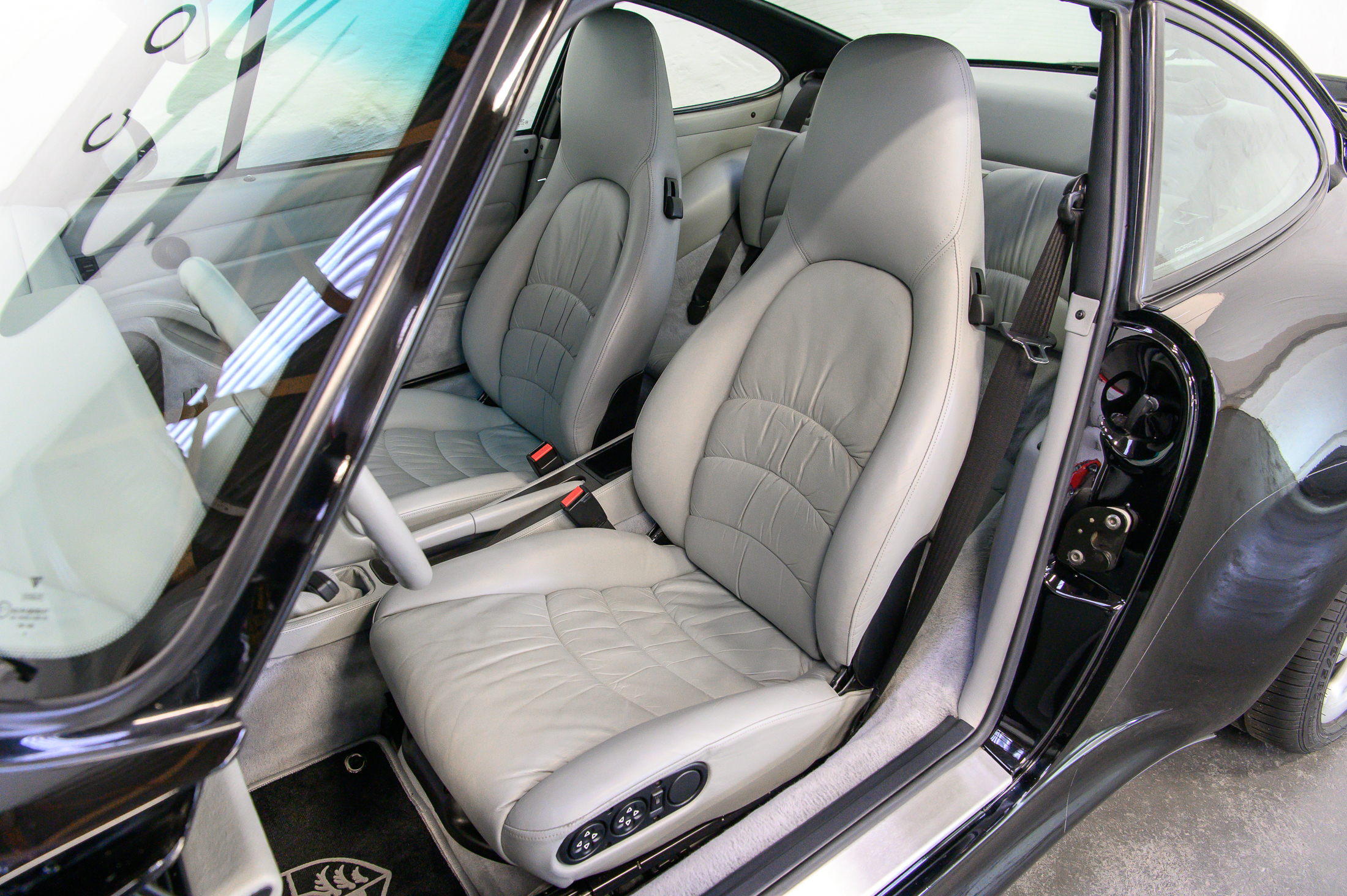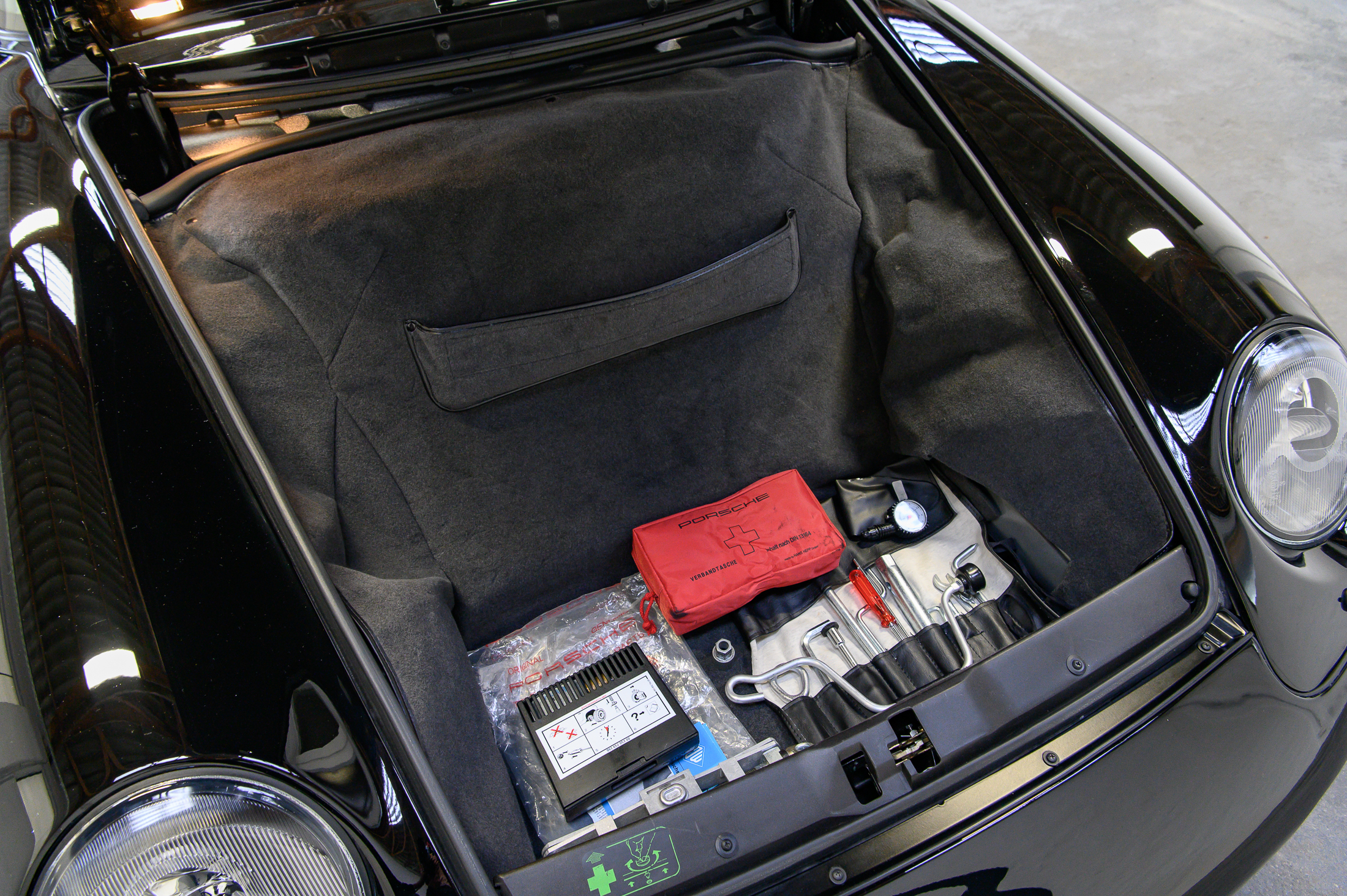 In unserem Auftrag wurde kürzlich eine umfassende Wartung durchgeführt. Neben den Arbeiten nach Werksvorgaben wurden die Kupplung inklusive Zweimassenschwungrad erneuert sowie neue Reifen mit Porsche-Kennung montiert. Sämtliche elektrischen und mechanischen Komponenten funktionieren der geringen Laufleistung entsprechend tadellos.