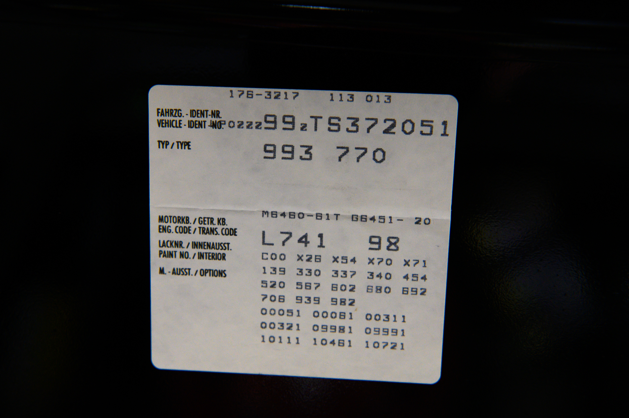 Ausgeliefert wurde das Fahrzeug im April 1996 über das Porsche Zentrum Willich. Insgesamt hatte der Turbo drei Halter, wobei der letzte Eigentümer das Fahrzeug über einen Zeitraum von 11 Jahren besaß. Die lückenlose Dokumentation umfasst unter anderem den originalen, ersten Fahrzeugbrief, ein vollständig gestempeltes Wartungsheft, das Protokoll der Werksabholung aus dem Jahr 1996 sowie sämtliche Rechnungen und HU-Belege seit Erstzulassung.